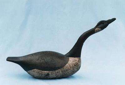 Our Large Canada Goose (call) is a big fellow with a studiously carved body that provides a classic profile, reminiscent of those chiseled out by many of the old carvers. It is branded with the “WHITE” name and features include black glass eyes, lead weight, distressed finish, and is hollow carved. Our larger pieces are hollow carved to take the stress out of the wood, which is done to prevent cracking. We also put two pennies inside as our trademark: this let’s everyone know the decoy is hollow and makes a great conversation piece. The Large Canada Goose (call) measures apprx. 25” long x 8” wide x 13” high.