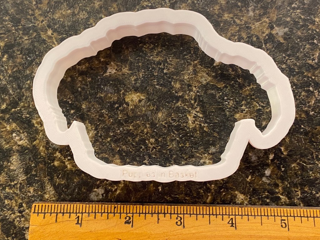 PUPPIES IN BASKET COOKIE CUTTER (Cookie Cutter only) is made by S.R. White Carving & Son for our Puppies in Basket Springerle Cookie Mold. Our Cookie Cutters are 3D printed in white with a food safe PLA. Made in the USA. The inside dimensions at the largest points of this cutter measure apprx. 2 3/4” high x 4 3/8” wide x 1/2″ deep. The Cookie Cutters can be used with any dough or clay. (Pictures of molded imprints are made with sculpey clay.)
