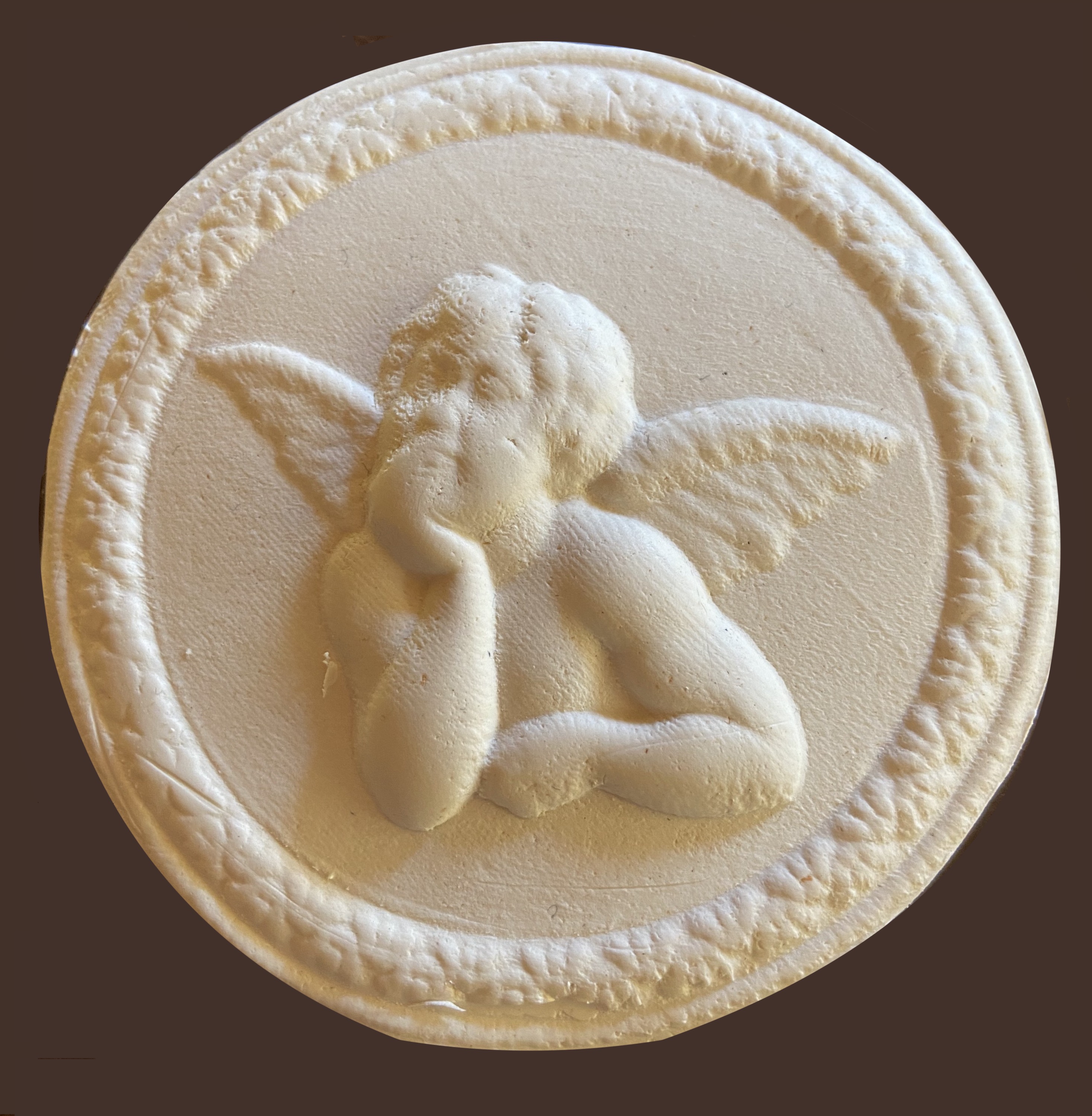 CHERUB SPRINGERLE COOKIE MOLD (Wooden Cookie Mold only) measuring approximately 3 1/2″ square x 1/2” thick; sizes will vary slightly. Each Springerle Mold is carved from kiln dried American Cherry wood and given a food-safe mineral oil finish. Carved by S.R. White Carving & Son in our Pennsylvania workshop. Each pattern is intricately carved in reverse to create a positive image in cookie dough or other pliable materials for craft projects. These Springerle Cookie Molds will make beautiful decorative cookies that you can use to adorn your Holiday table. Crafters can also use these Cookie Molds to make festive decorations because of their decorative design. A Springerle Cookie recipe is included with each Cookie Mold. Collect all our Springerle Cookie Molds for your baking and Holiday decorating. (Pictures of molded Cherub are made with sculpey clay.)