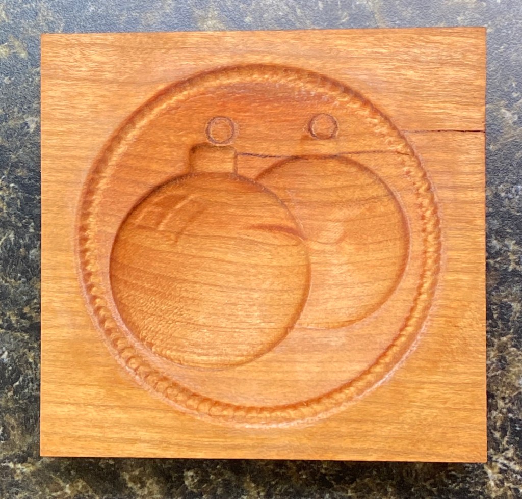 CHRISTMAS ORNAMENTS SPRINGERLE COOKIE MOLD (Wooden Cookie Mold only) measuring approximately 3 1/2″ square x 1/2” thick; sizes will vary slightly. Each Springerle Mold is carved from kiln dried American Cherry wood and given a food-safe mineral oil finish. Carved by S.R. White Carving & Son in our Pennsylvania workshop. Each pattern is intricately carved in reverse to create a positive image in cookie dough or other pliable materials for craft projects. These Springerle Cookie Molds will make beautiful decorative cookies that you can use to adorn your Holiday table. Crafters can also use these Cookie Molds to make festive decorations because of their decorative design. A Springerle Cookie recipe is included with each Cookie Mold. Collect all our Springerle Cookie Molds for your baking and Holiday decorating. (Pictures of molded Christmas Ornaments are made with sculpey clay.)