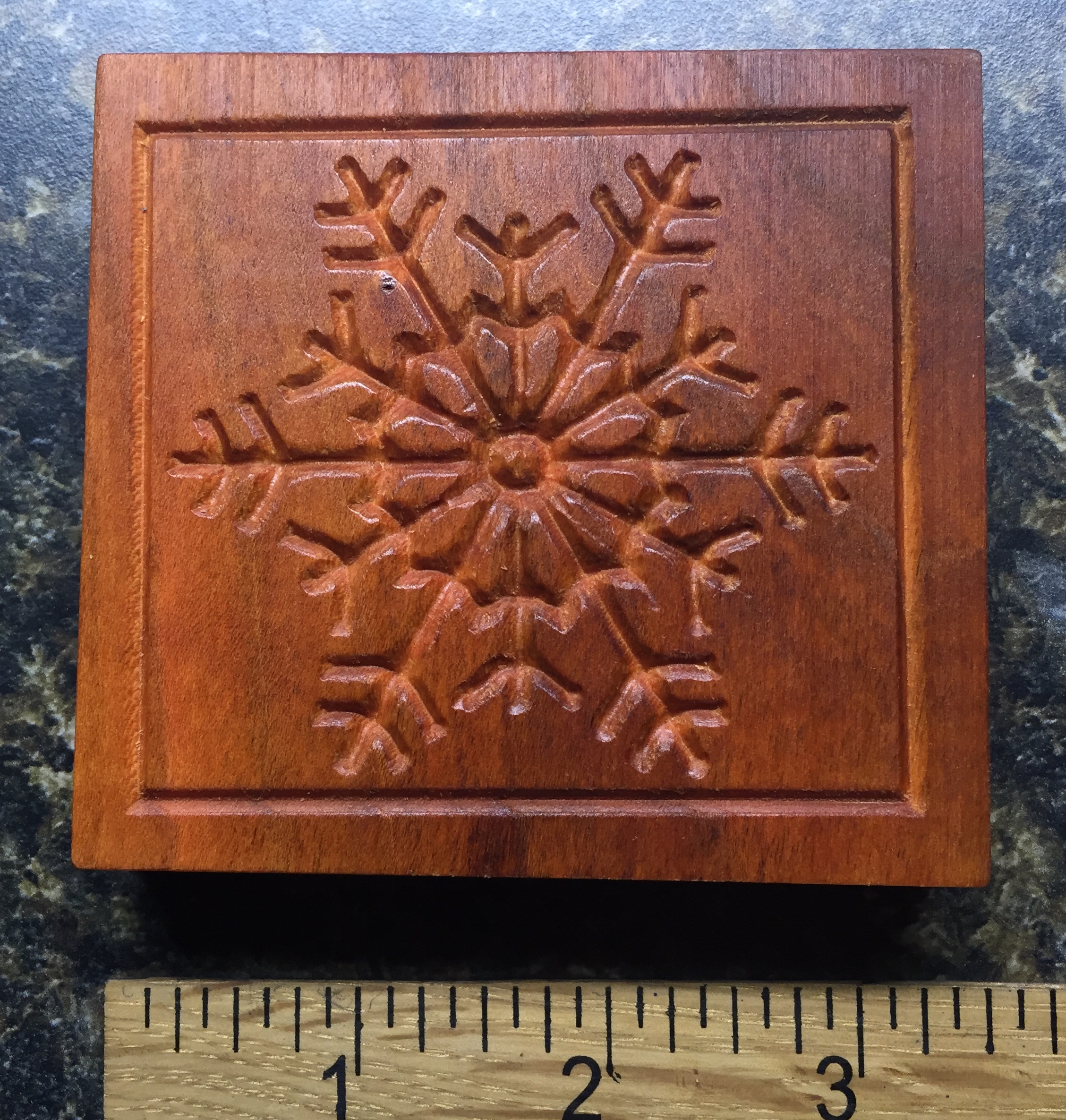 LACEY SNOWFLAKE SPRINGERLE COOKIE MOLD (Wooden Cookie Mold only) measuring approximately 3 1/2″ square x 1/2” thick; sizes will vary slightly. Each Springerle Mold is carved from kiln dried American Cherry wood and given a food-safe mineral oil finish. Carved by S.R. White Carving & Son in our Pennsylvania workshop. Each pattern is intricately carved in reverse to create a positive image in cookie dough or other pliable materials for craft projects. These Springerle Cookie Molds will make beautiful decorative cookies that you can use to adorn your Holiday table. Crafters can also use these Cookie Molds to make festive decorations because of their decorative design. A Springerle Cookie recipe is included with each Cookie Mold. Collect all our Springerle Cookie Molds for your baking and Holiday decorating. (Pictures of molded Lacey Snowflake are made with sculpey clay.)