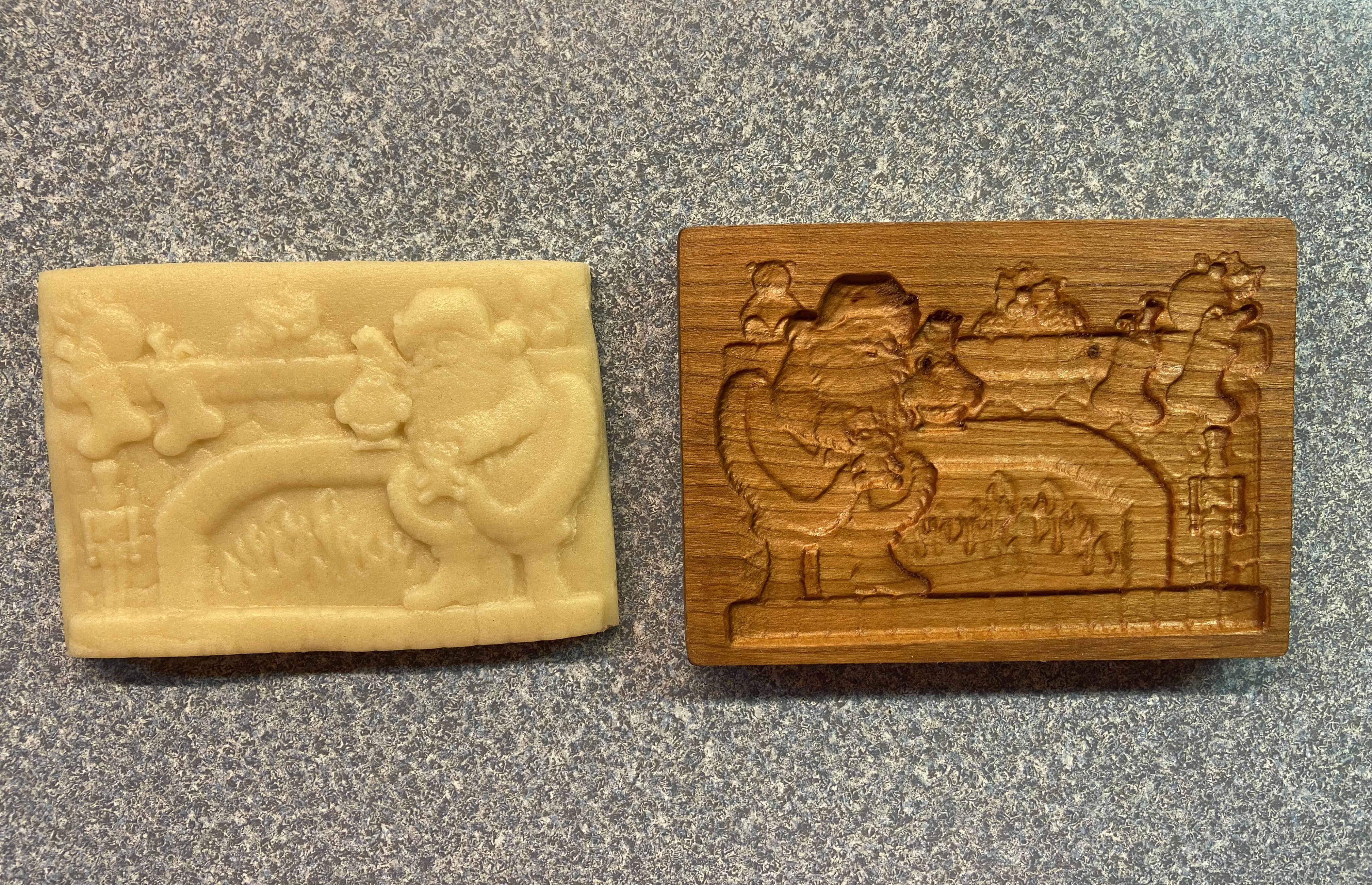 Care Instructions: Each wooden Springerle Mold is given a food-safe oil finish that can be washed in a little soap and water. After use, gently wash the Springerle Mold under running warm water, use toothbrush to clean crevices. DO NOT soak in water. Let dry thoroughly then apply a light coat of food safe oil with a soft, lint free cloth and pat dry, wiping off all the excess oil. (We use food safe mineral oil.) Let dry completely before using again.